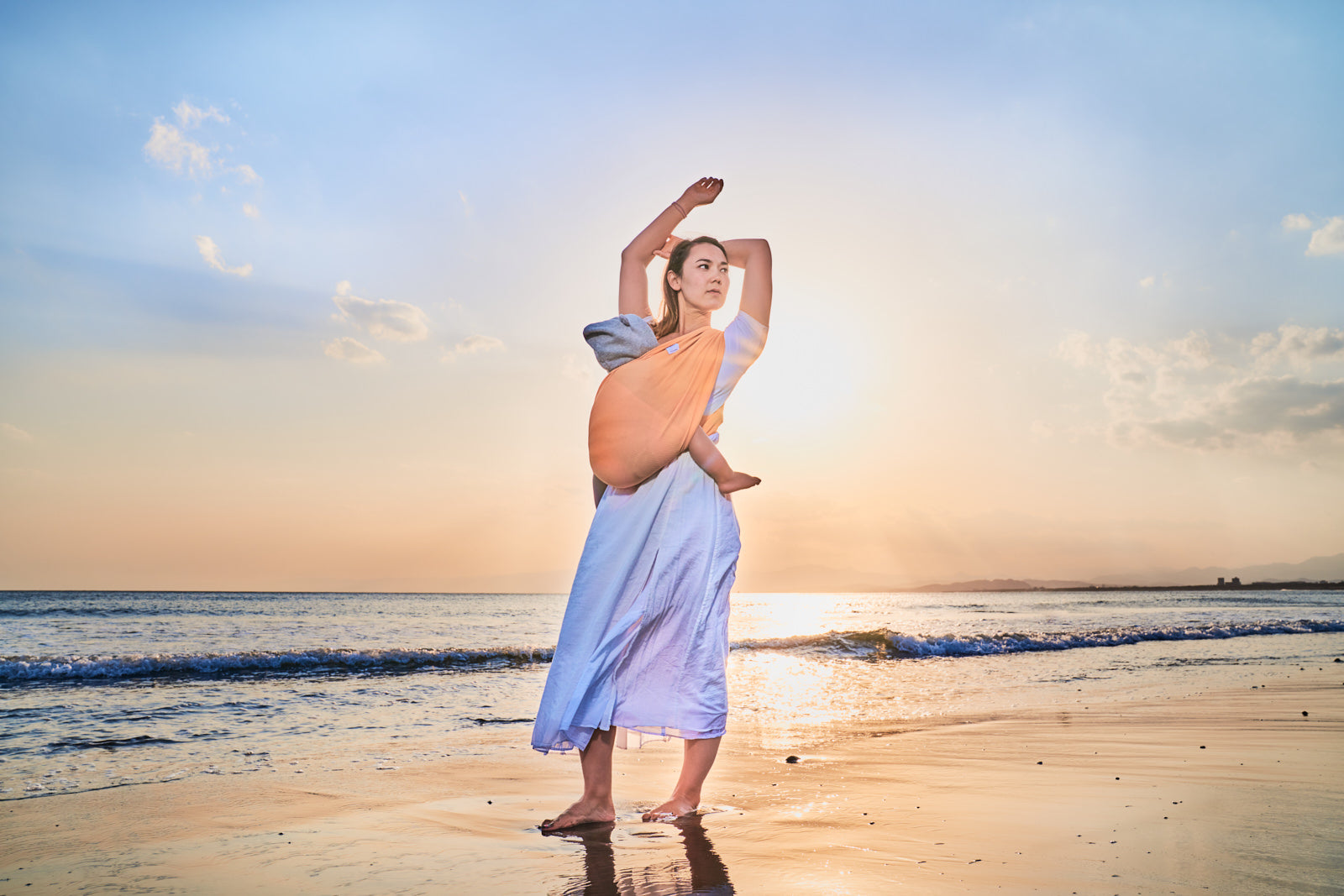 The slings are certified by ASTM, one of the world's largest private standard-testing organizations, as a safe baby carrier. All slings are made in our atelier in Tokyo by mothers. Each sling is handmade with care, which is not possible with factory production.